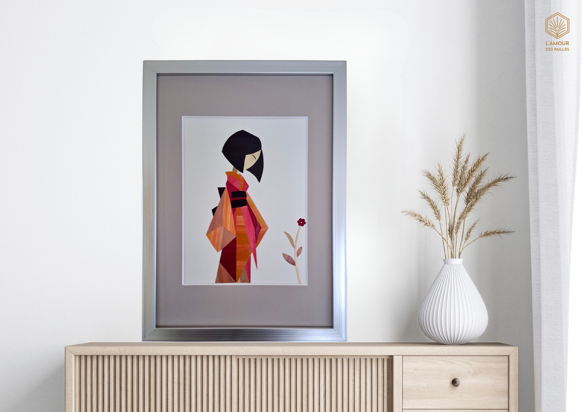 Découvrez mes réalisations en marqueterie de paille, un art délicat qui mêle traditions anciennes et créativité contemporaine pour inspirer votre intérieur.